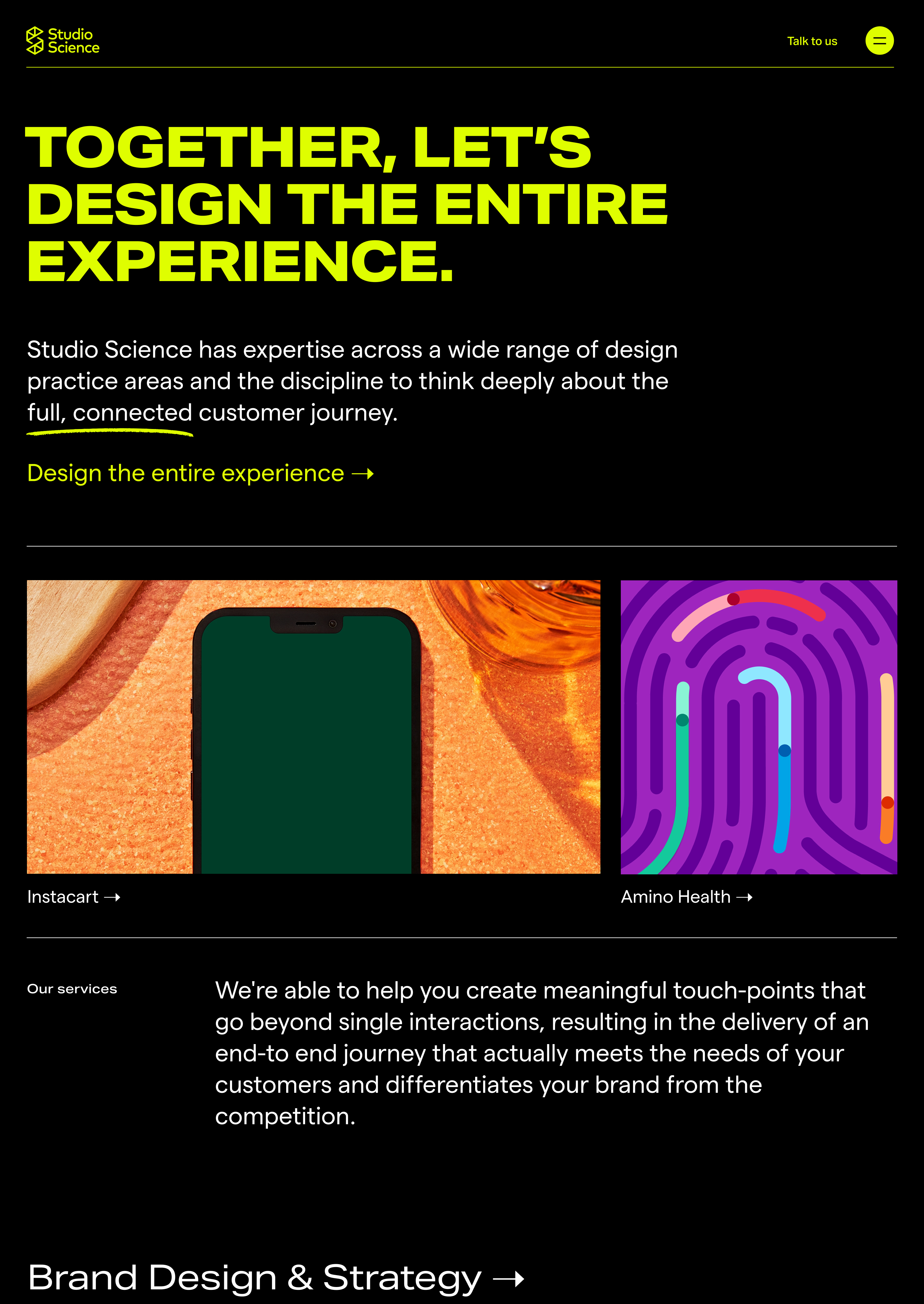 Studio Science is a CX consultancy driving success through the union of design and technology. As a Senior Designer, I supported clients through a variety of projects, like brand strategy, product design, and website up-scaling.